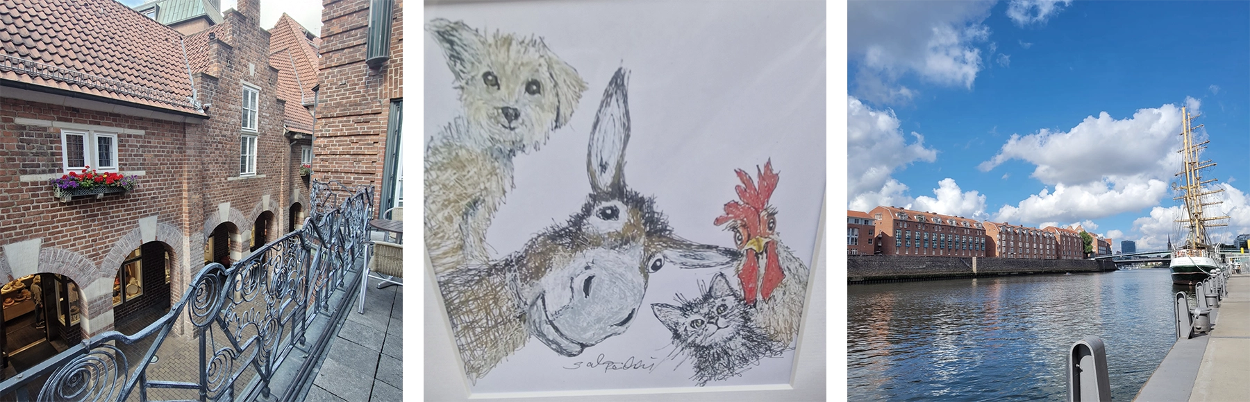 Danach hatten wir Zeit zur freien Verfügung in Bremen und konnten bei traumhaftem Sonnenschein, noch einmal ganz in Ruhe die kleinen Lädchen im Schnoor Viertel oder der Bötticher Straße unter die Lupe nehmen oder auf dem Markplatz zu schlemmen oder oder oder.