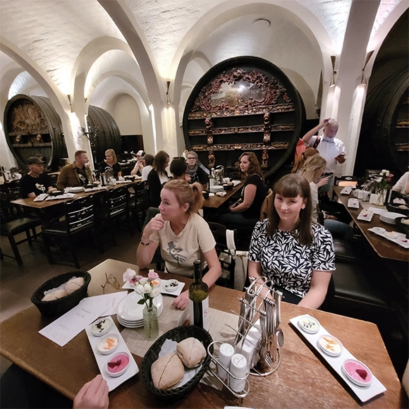 Zur Stärkung trafen wir uns immer wieder alle in den verschiedensten Lokalitäten. So gab es die Vorspeise in Bremens legendärem Ratskeller, der vor allem für seine große Weinauswahl bekannt ist, später kehrten wir in ein rheinisches Gasthaus zum Hauptgang ein und fanden den Abschluss
